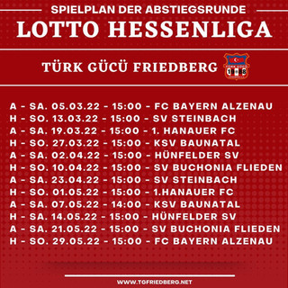Spielplan für die Abstiegsrunde steht festadmin-FK10. Jan. 20221 Min. LesezeitDer voraussichtliche Spielplan für die Abstiegsrunde ist raus.Wir starten am 5.März in die Abstiegsrunde beim FC Bayern Alzenau 1920.